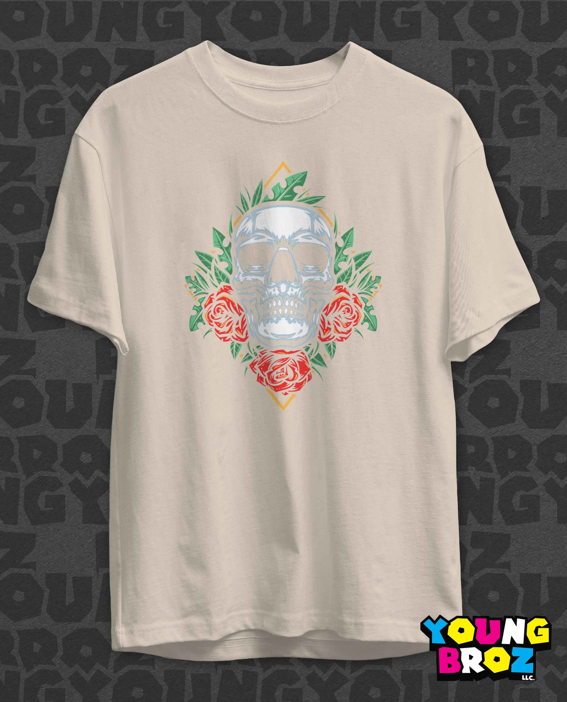 Beauty fades. Style doesn’t. The “Roses & Bones” design pairs bold tattoo-inspired art with timeless street energy — a skull framed in vivid red roses and green leaves, symbolizing the balance between life, death, and drip. It’s minimal in palette but maximum in presence — a piece that looks just as good at the shop as it does on a night out.